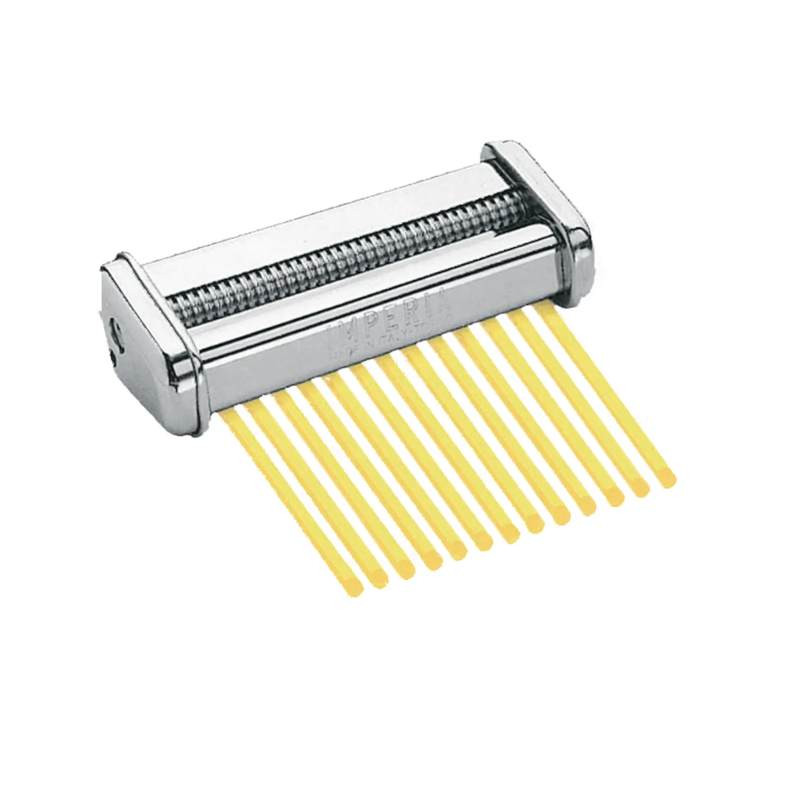 Spécialement conçu pour s’adapter aux Machines à Pâtes IMPERIA, il permet de réaliser des spaghettis fins et uniformes de 2 mm de largeur, parfaits pour des plats authentiques inspirés des trattorias italiennes.