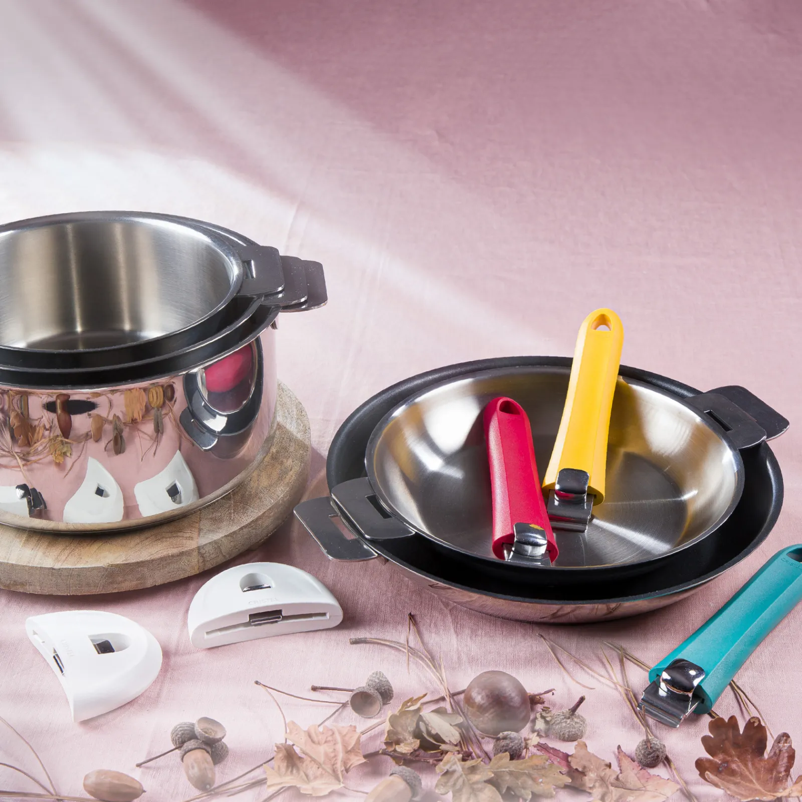 Dernières nées des anses amovibles CRISTEL, les anses Mutine Evolution sont associées aux ustensiles de cuisson inox de la collection Mutine Amovible mais s’adaptent également à tous les faitouts, poêles, sauteuses, … des différentes collections amovibles CRISTEL.