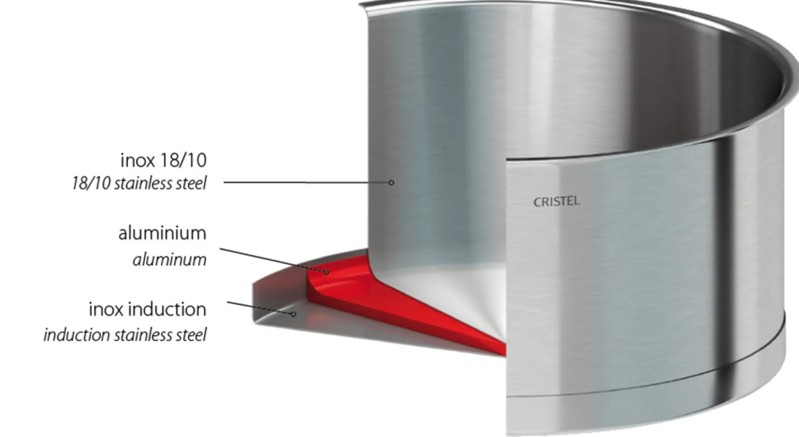 La casserole haute graduée Strate mesure 11 cm de hauteur contre 7 pour une casserole CRISTEL de même diamètre.