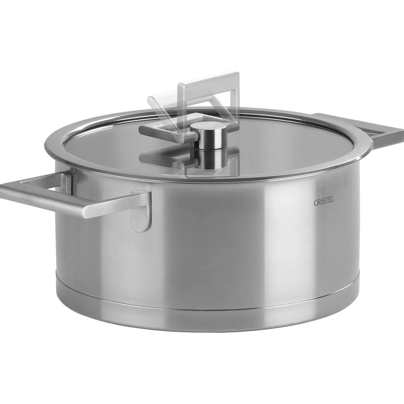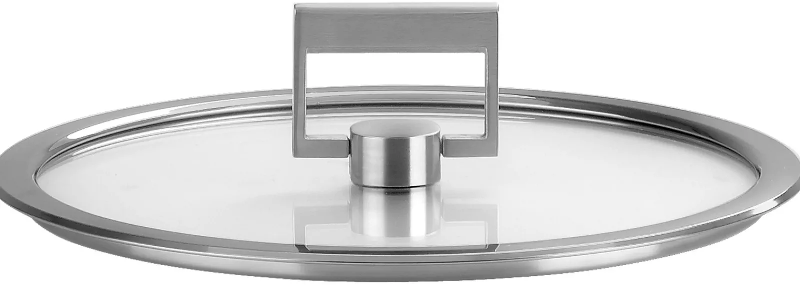 Couvercle Strate Fixe en verre trempé cerclé inox.Plat, avec un bouton rabattable, le couvercle Strate Fi…