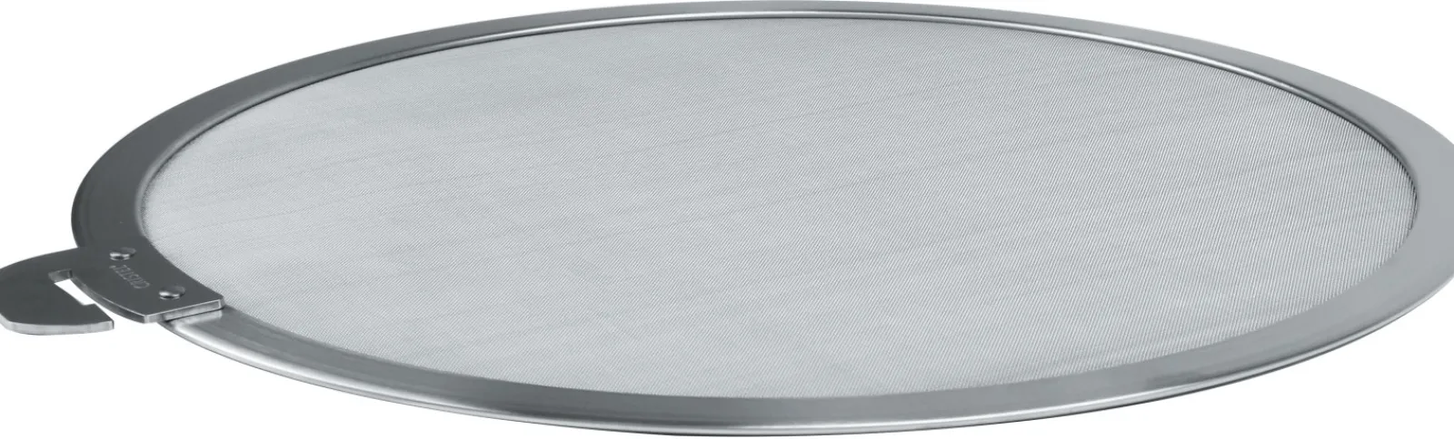 Couvercle plat anti-projection à poignée amovible, cerclage inox, à poignée Amovible.