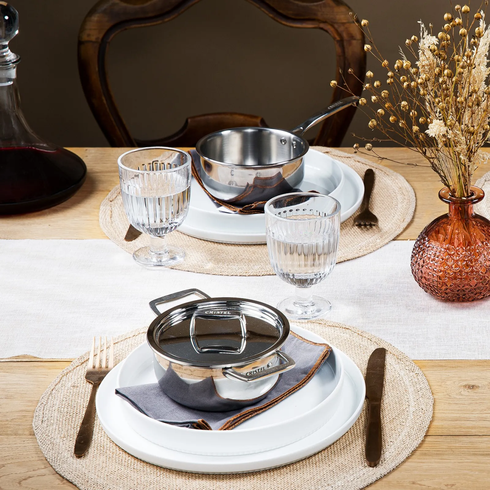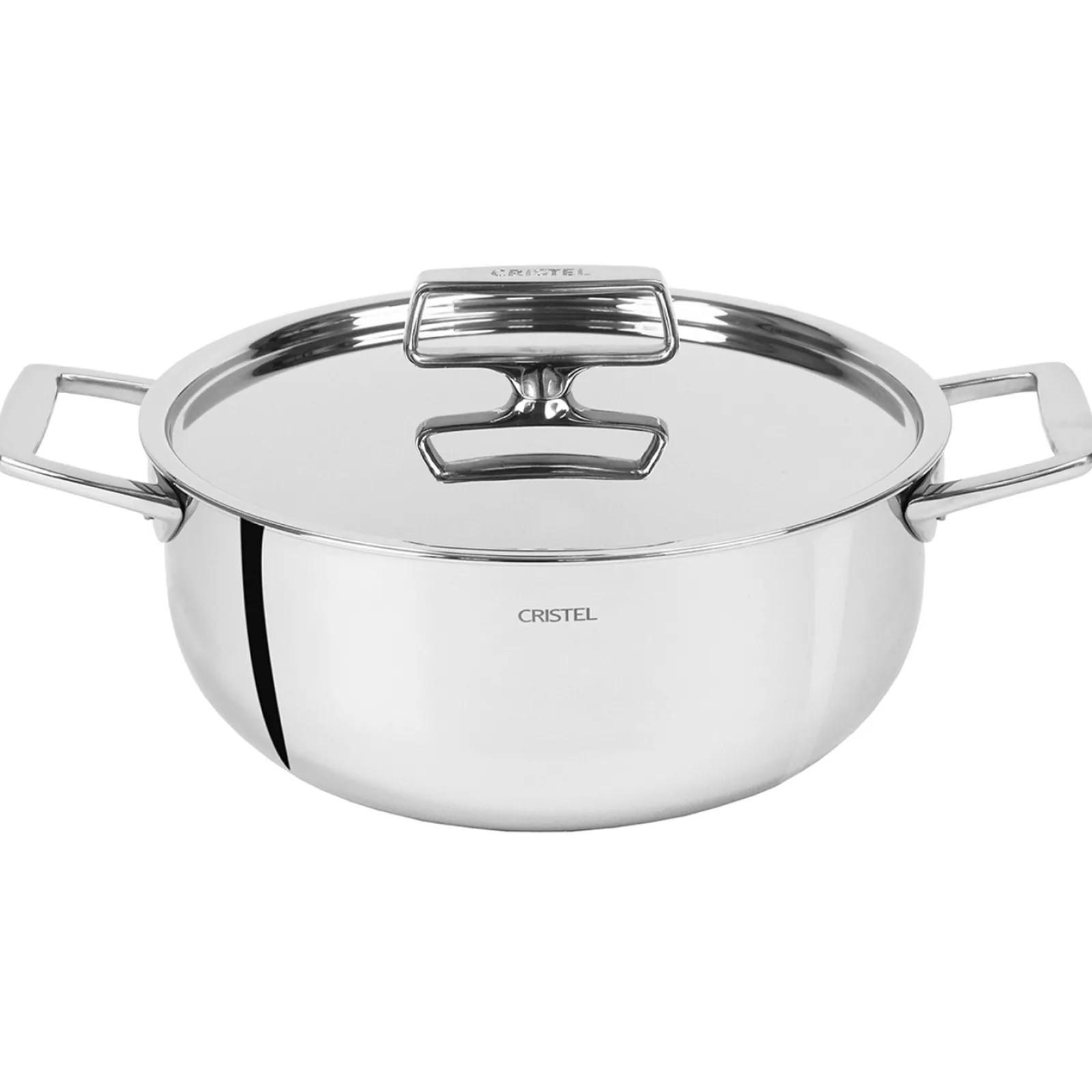Anse large en inox massif pour une parfaite préhension. Siglée CRISTEL.