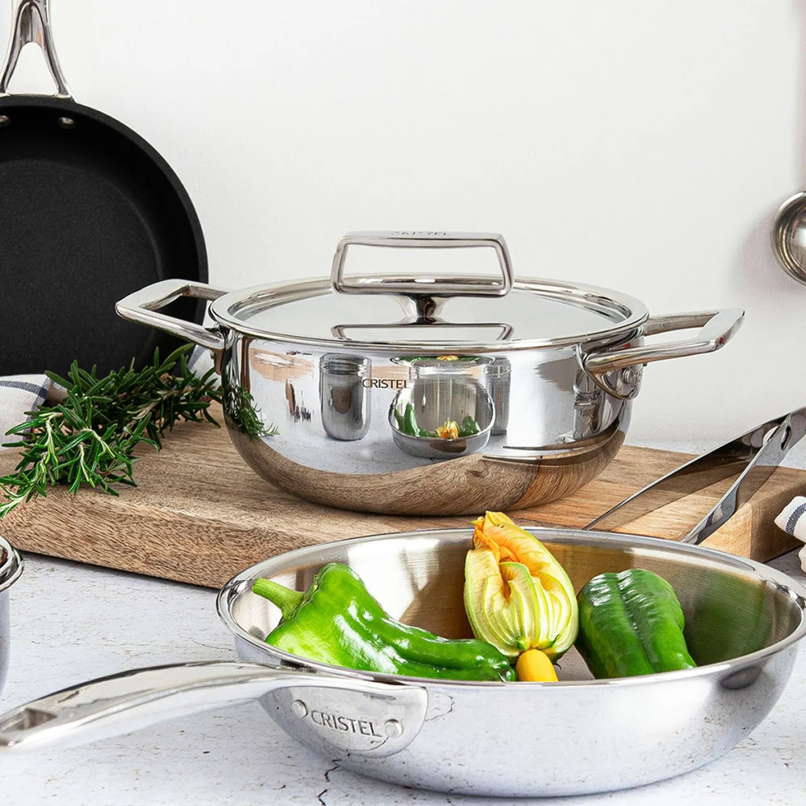 Parfaitement adapté à tous les articles de cuisson inox de la collection, les couvercles CRISTEL Castel’Pro permettent à vos plats de mijoter sans se déssecher : la forme dite « à drageoir » permet de retenir l’eau d’évaporation.