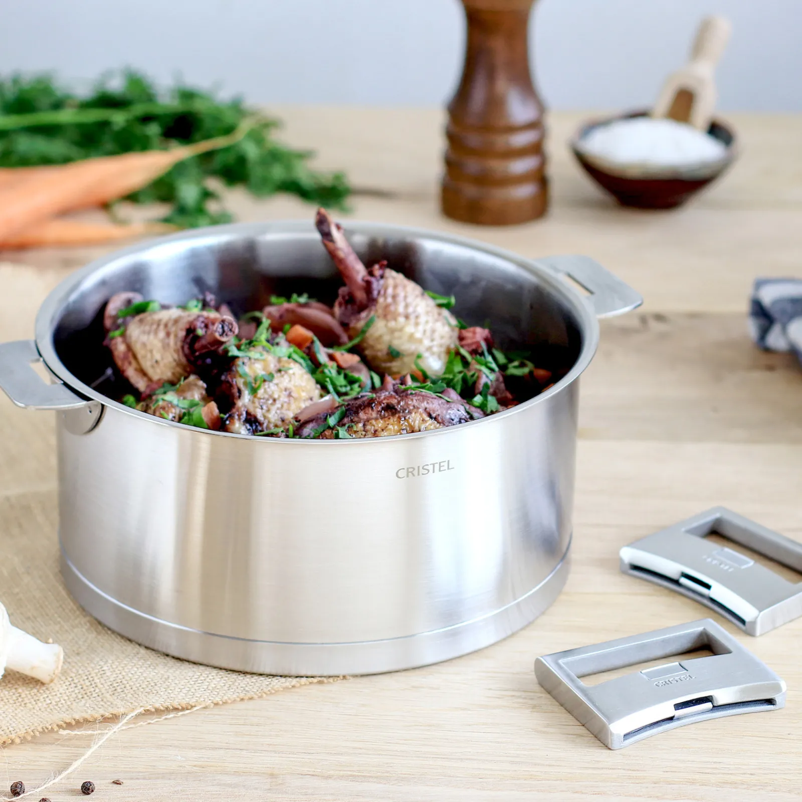 Faitout inox 18/10, finition brossée, poignée amovible, de la collection Strate Amovible.