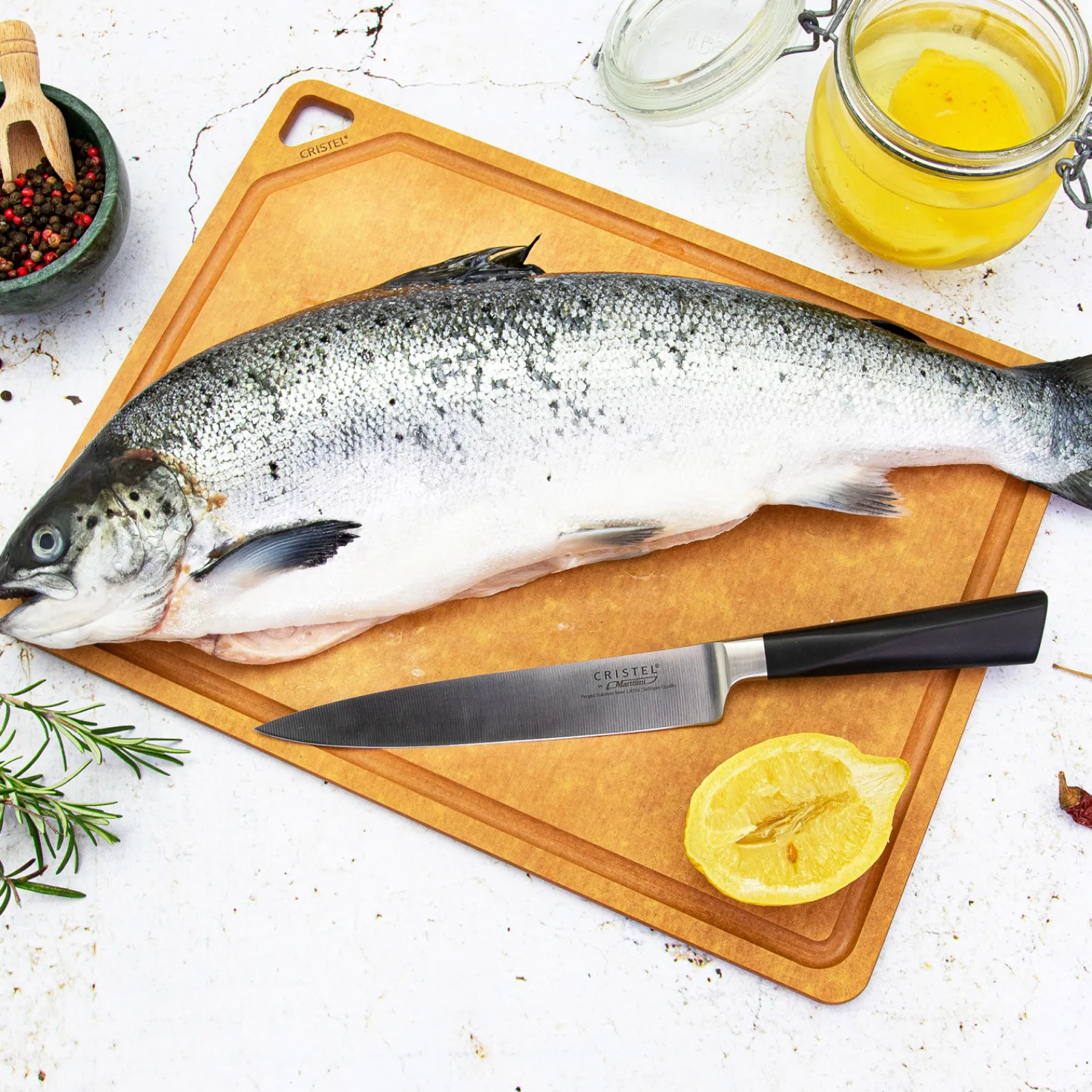 Réalisées en cellulose compressée et résine phénolique, préservant l’environnement, ces planches à découper sont légères et non poreuses, évitant la prolifération des bactéries et l’altération du goût des aliments. Disponibles en 6 modèles différents.