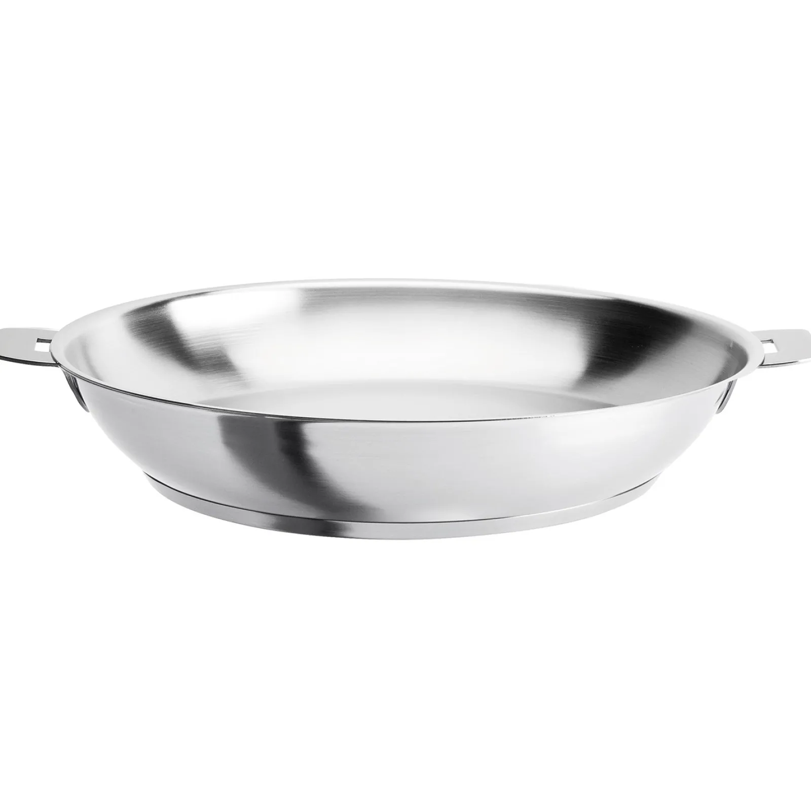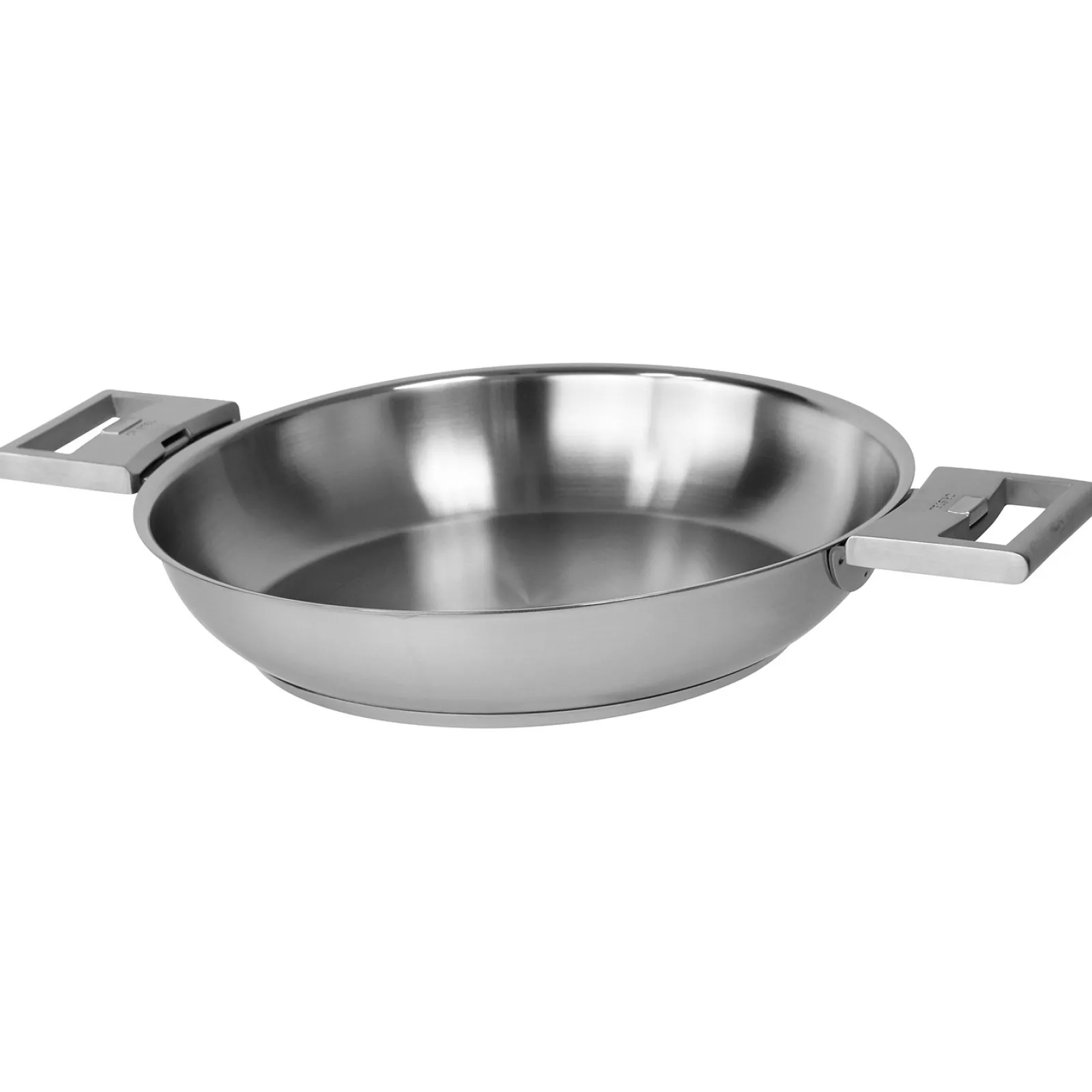 Poêle haute inox 18/10 « type lyonnaise », finition brossée, poignée amovible, de la collection Strate Amovible.