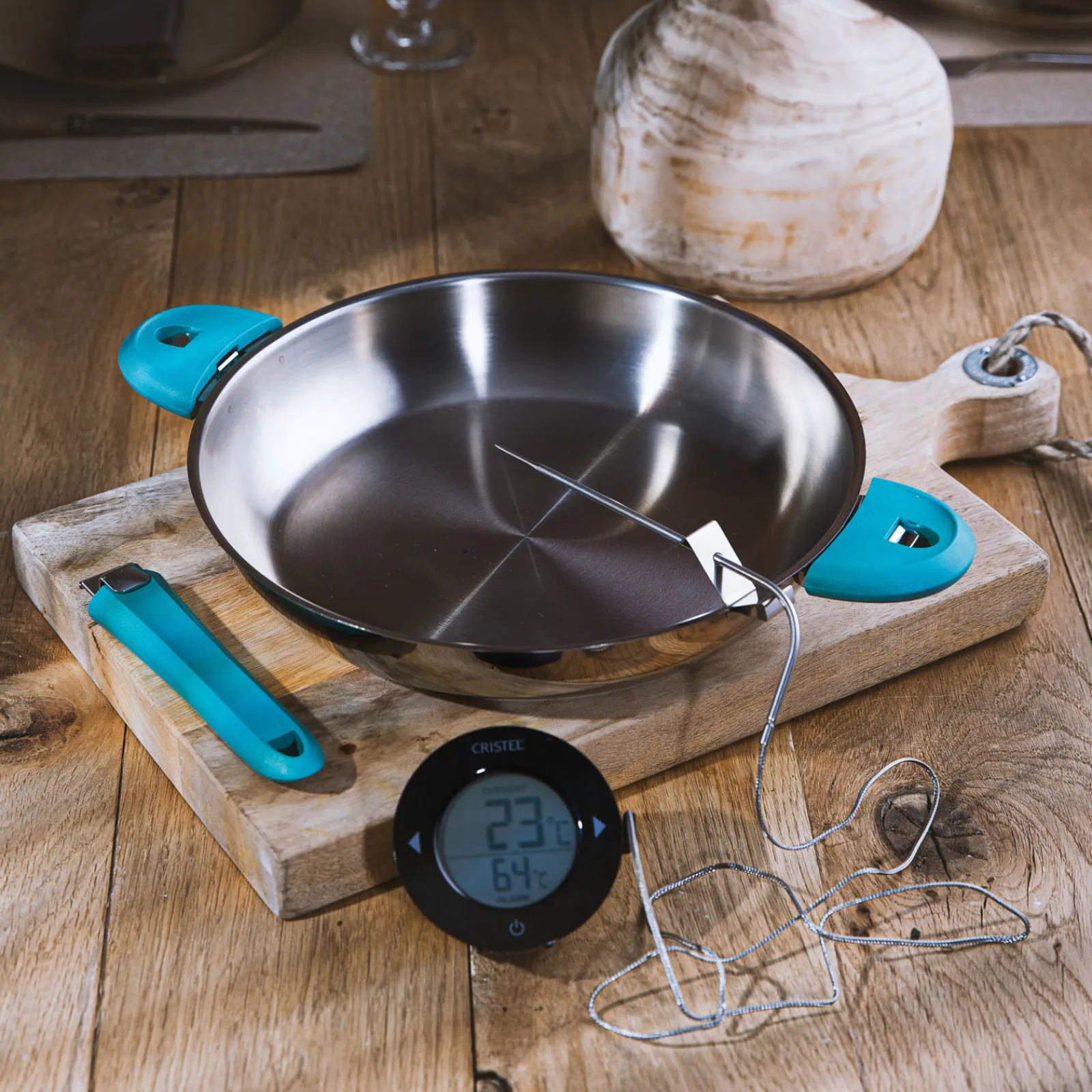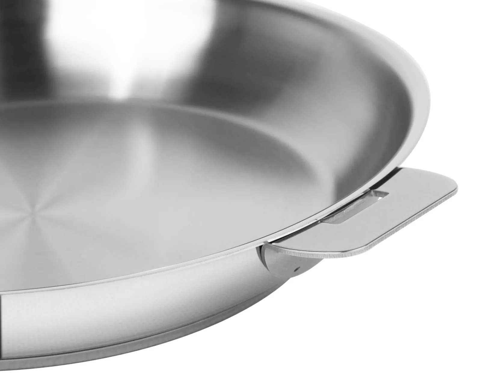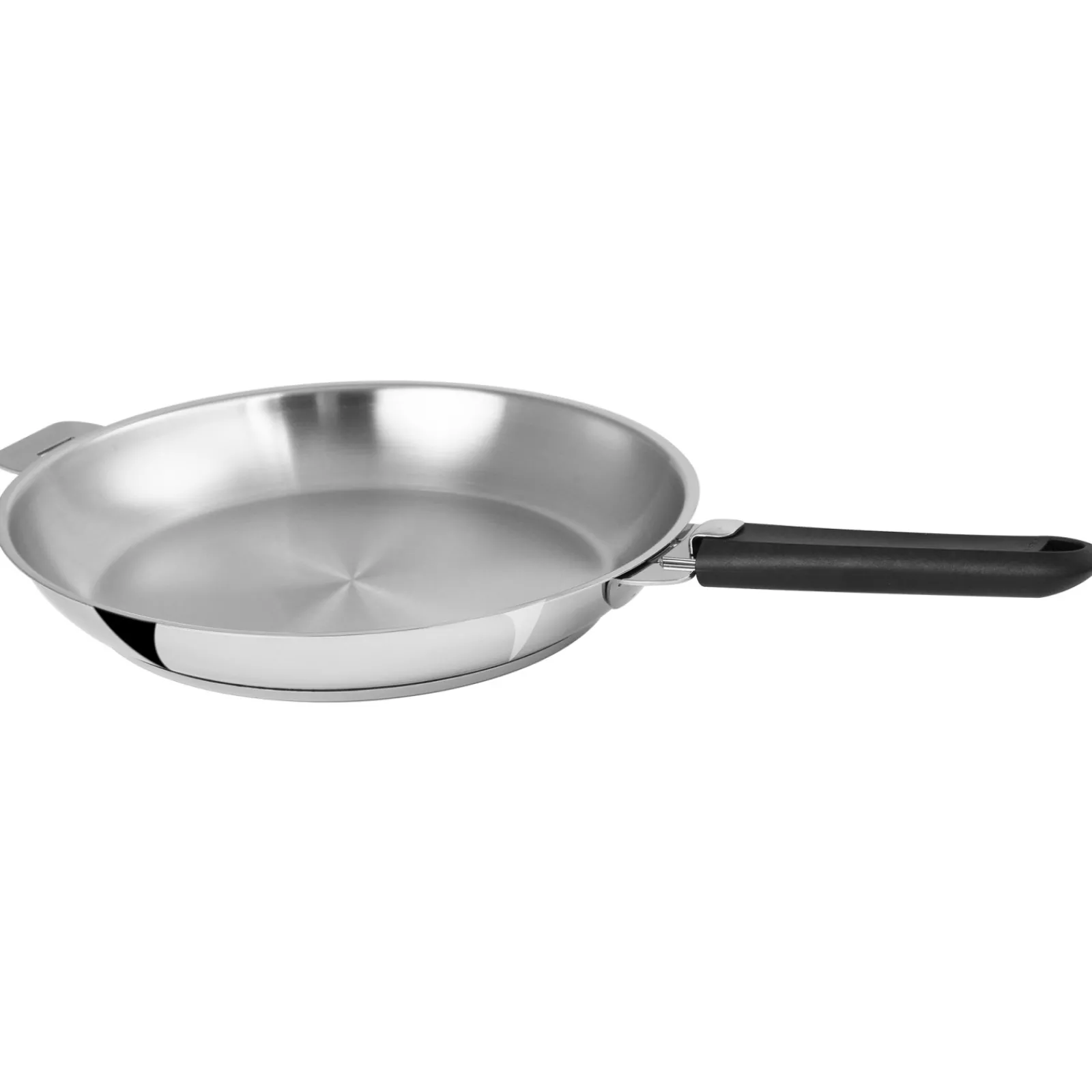 Poêle inox 18/10, finition brillant miroir, poignée amovible, de la collection Mutine Amovible.