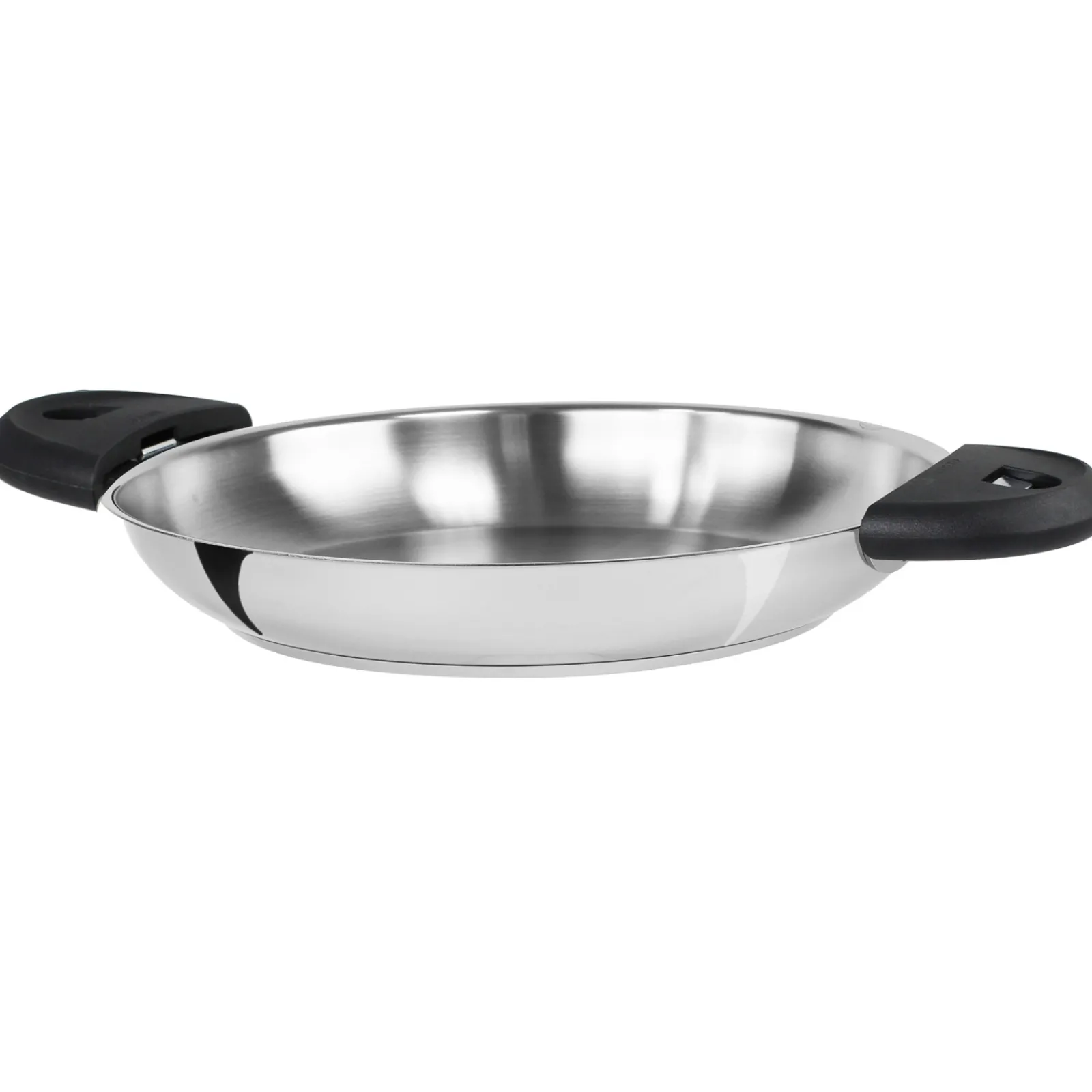Idéales pour saisir les viandes, les poêles inox à poignée amovible permettent, grâce à la qualité de leur fond diffuseur, de saisir parfaitement sans eau ni graisse.
