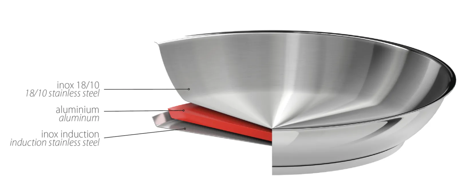 Les poêles Mutine, en inox 18/10, préservent les qualités gustatives des aliments et se nettoient facilement après la cuisson.