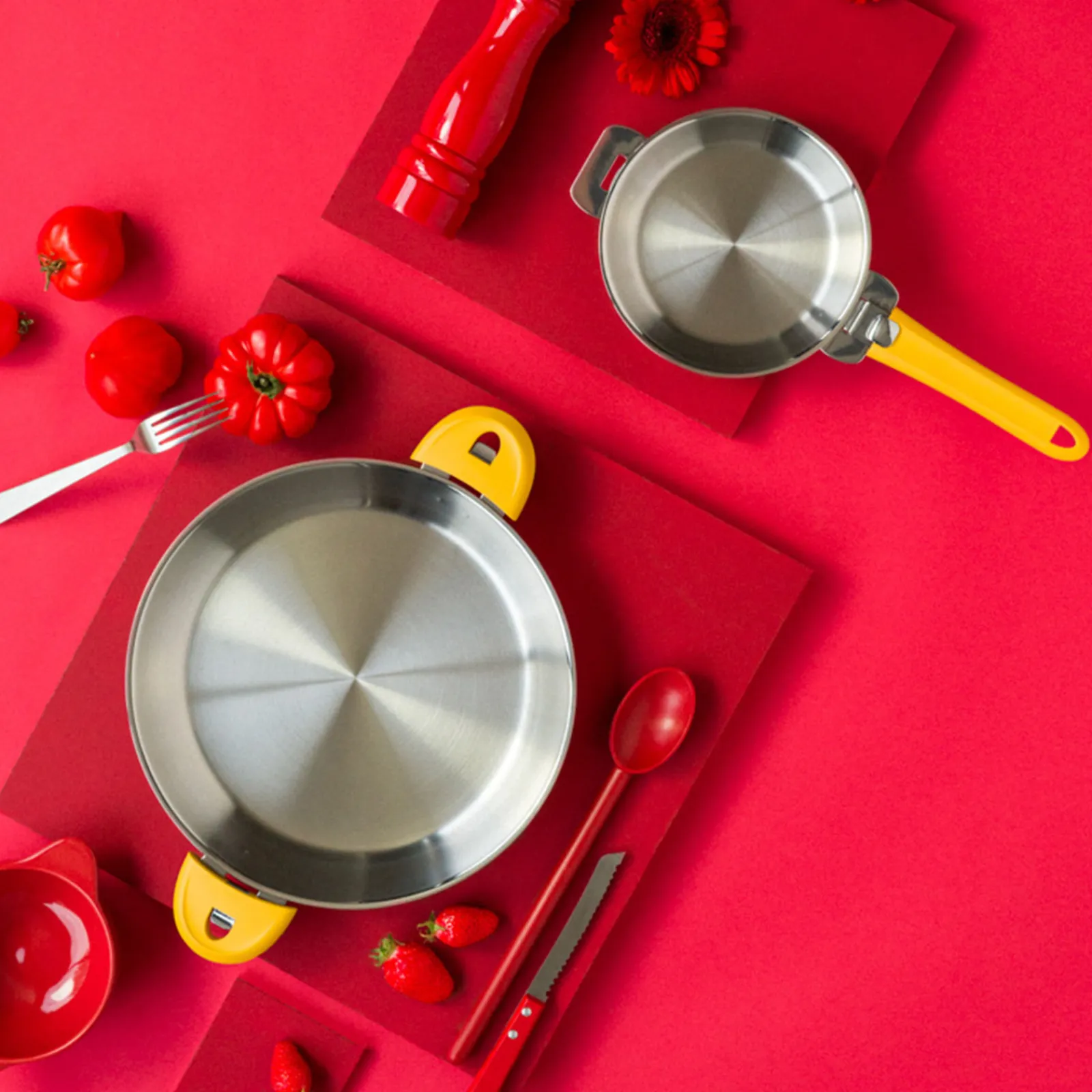 Les poêles inox Mutine Amovible existent en 6 tailles : 16, 20, 22, 24, 26 et 28 cm.