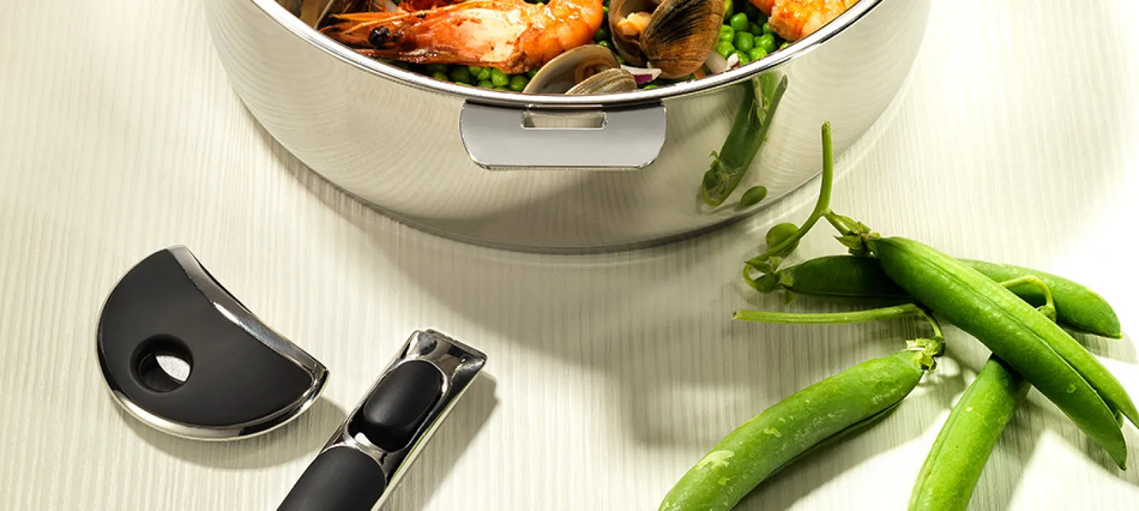 Dernières nées des poignées amovibles CRISTEL, la poignée Zénith 3 est associée à la collection Casteline. Elle s’adapte également à toutes les casseroles, poêles…