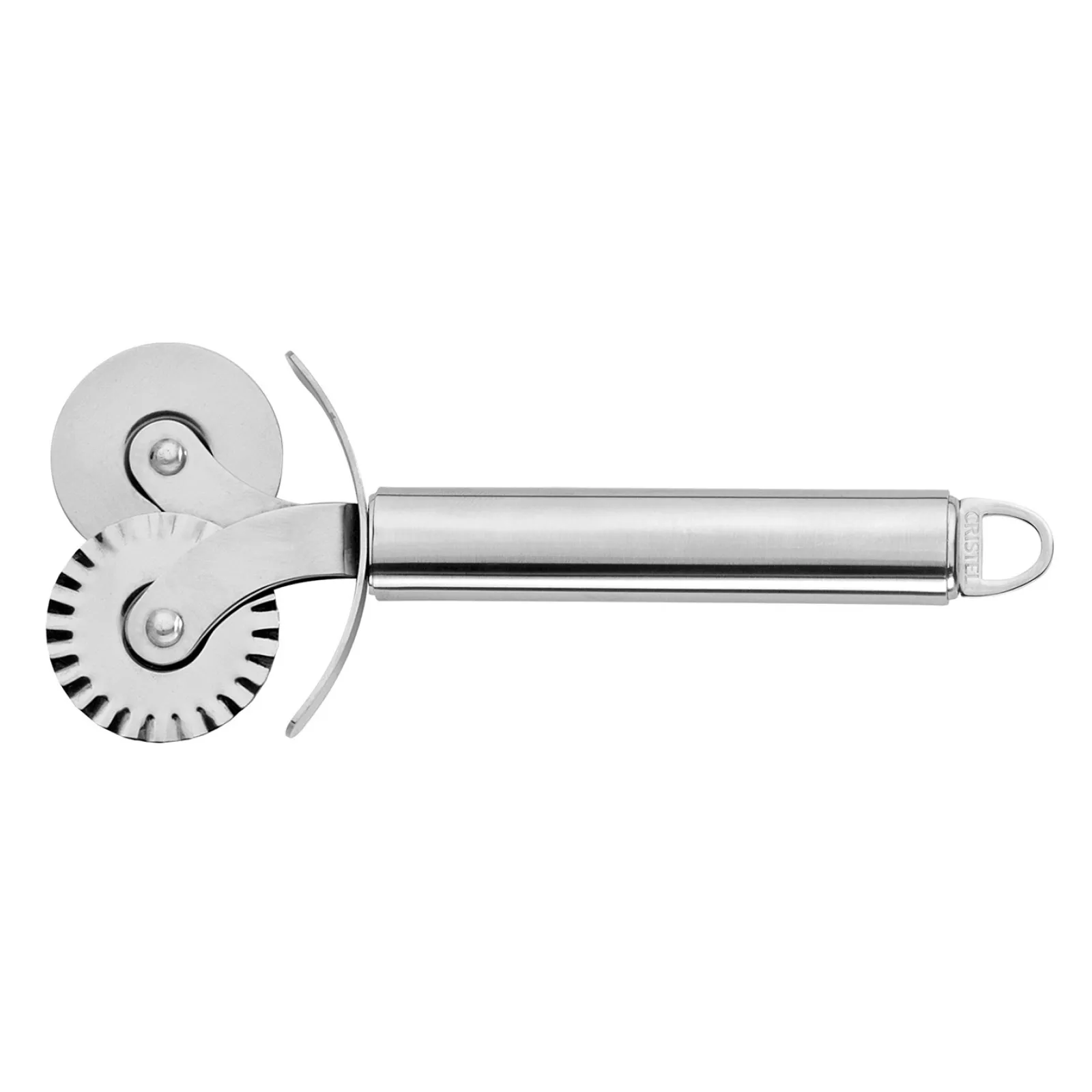 Roulette crantée pour découper la pâte pour beignets, bugnes, ravioles, chaussons sucrés ou salés, … Pour réaliser le traillage d’une Linzertorte.