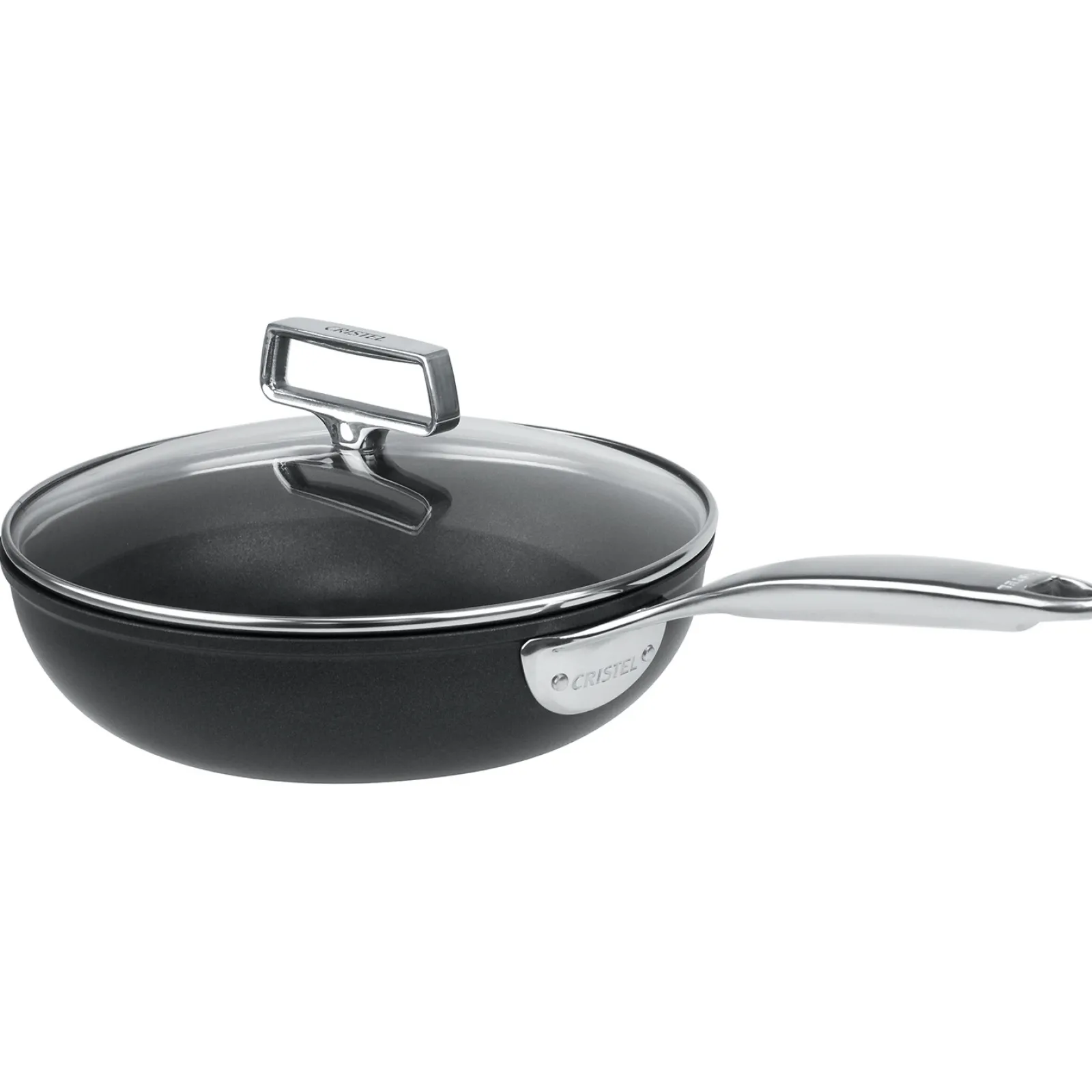Sauteuse aluminium Castel’Pro Ultralu et revêtement antiadhésif Exceliss®+ sans PFOA et sans PFOS. Poignée fixe en fonte d’inox, rivetée.