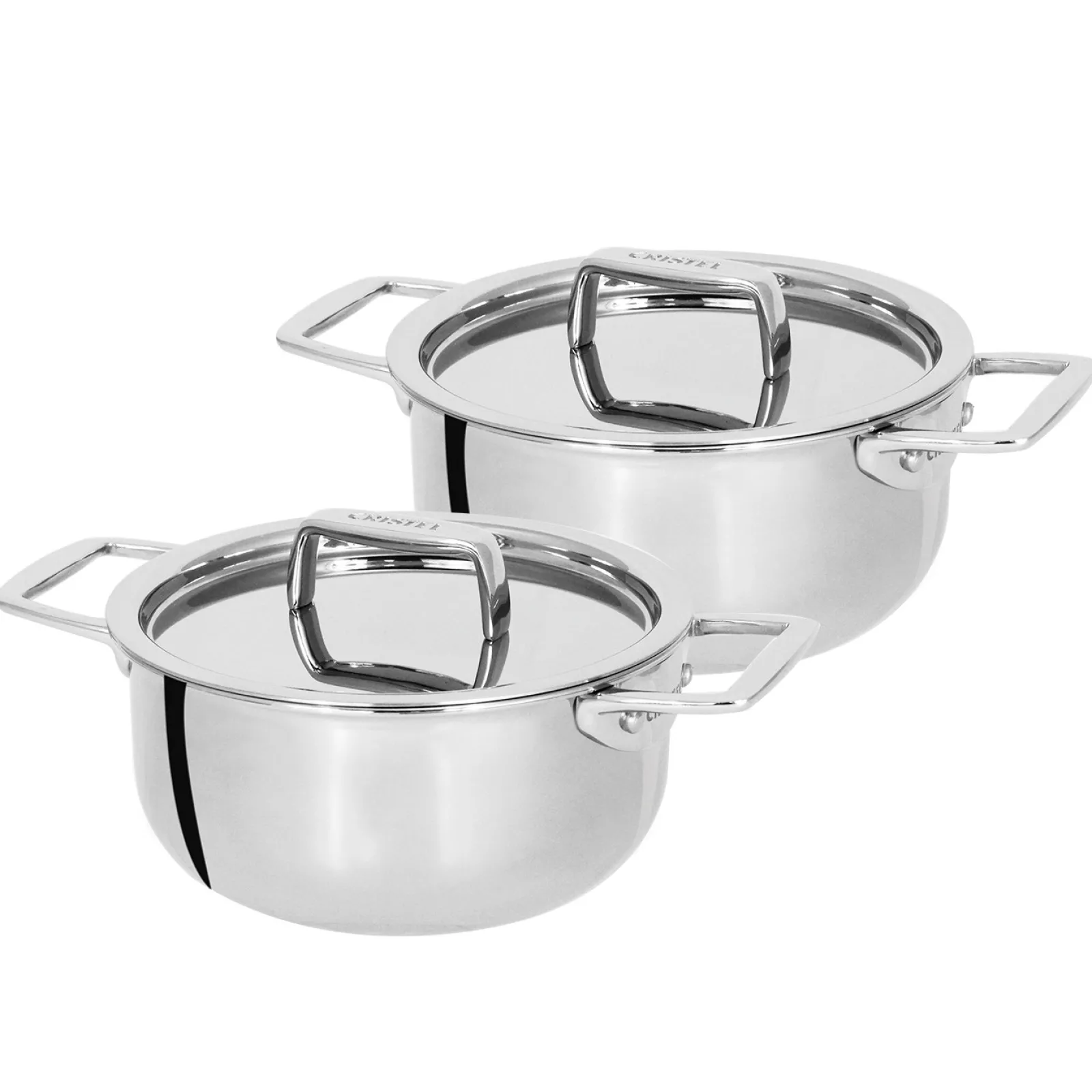 En trilaminé, inox / aluminium / inox, ces faitouts passent sur induction et au four. Idéal pour les dîners à deux, ce set cadeau est livré avec un livret de recettes originales, développées par CRISTEL spécifiquement pour ce produit.