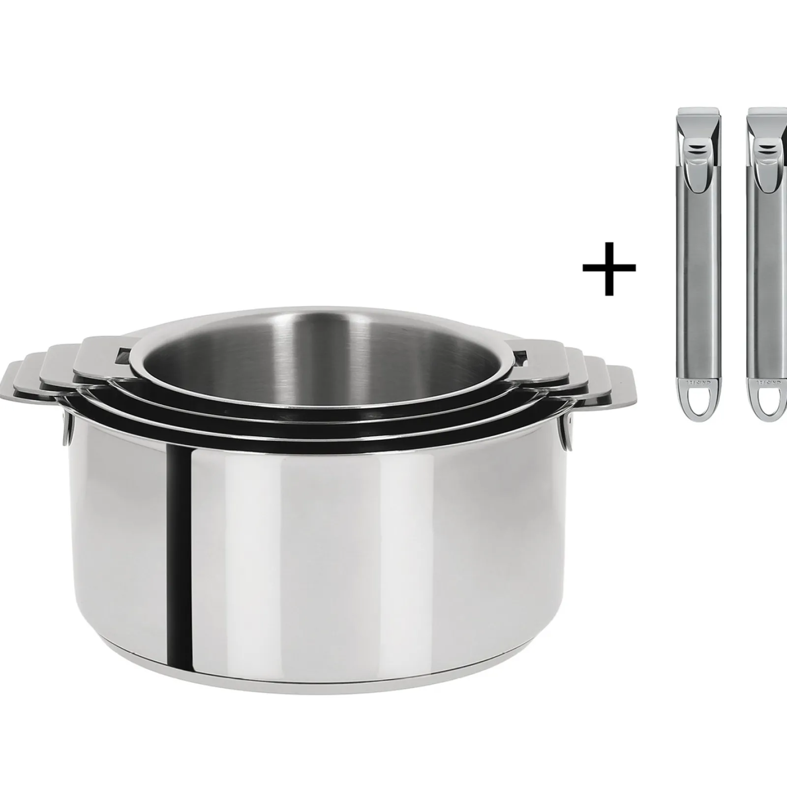 Complétez votre set de 4 casseroles en inox Mutine Amovible avec la Série de 4 Couvercles Platine en verre, de la même collection.
