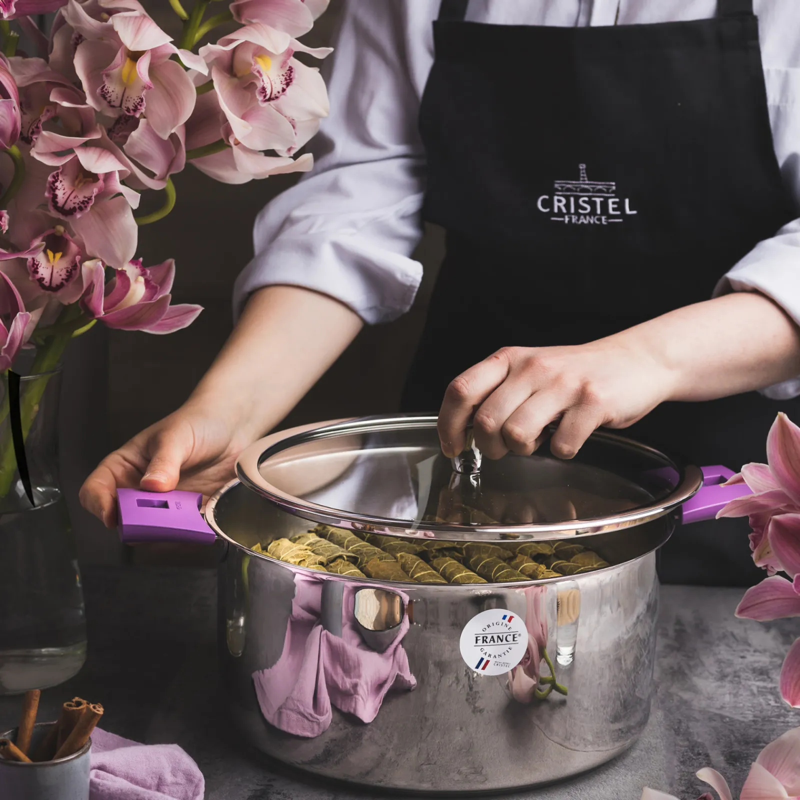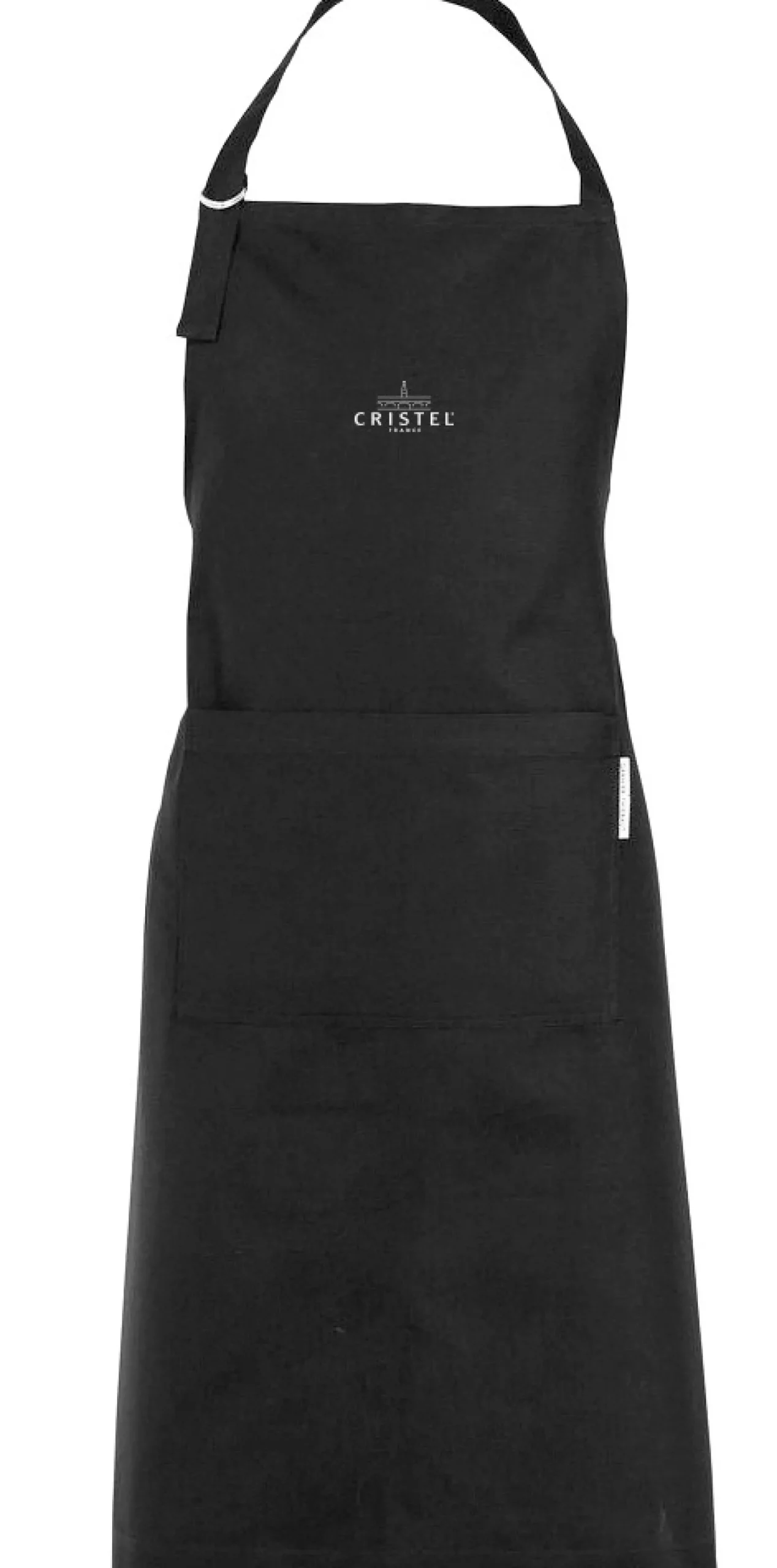 Tablier en coton noir marqué CRISTEL.