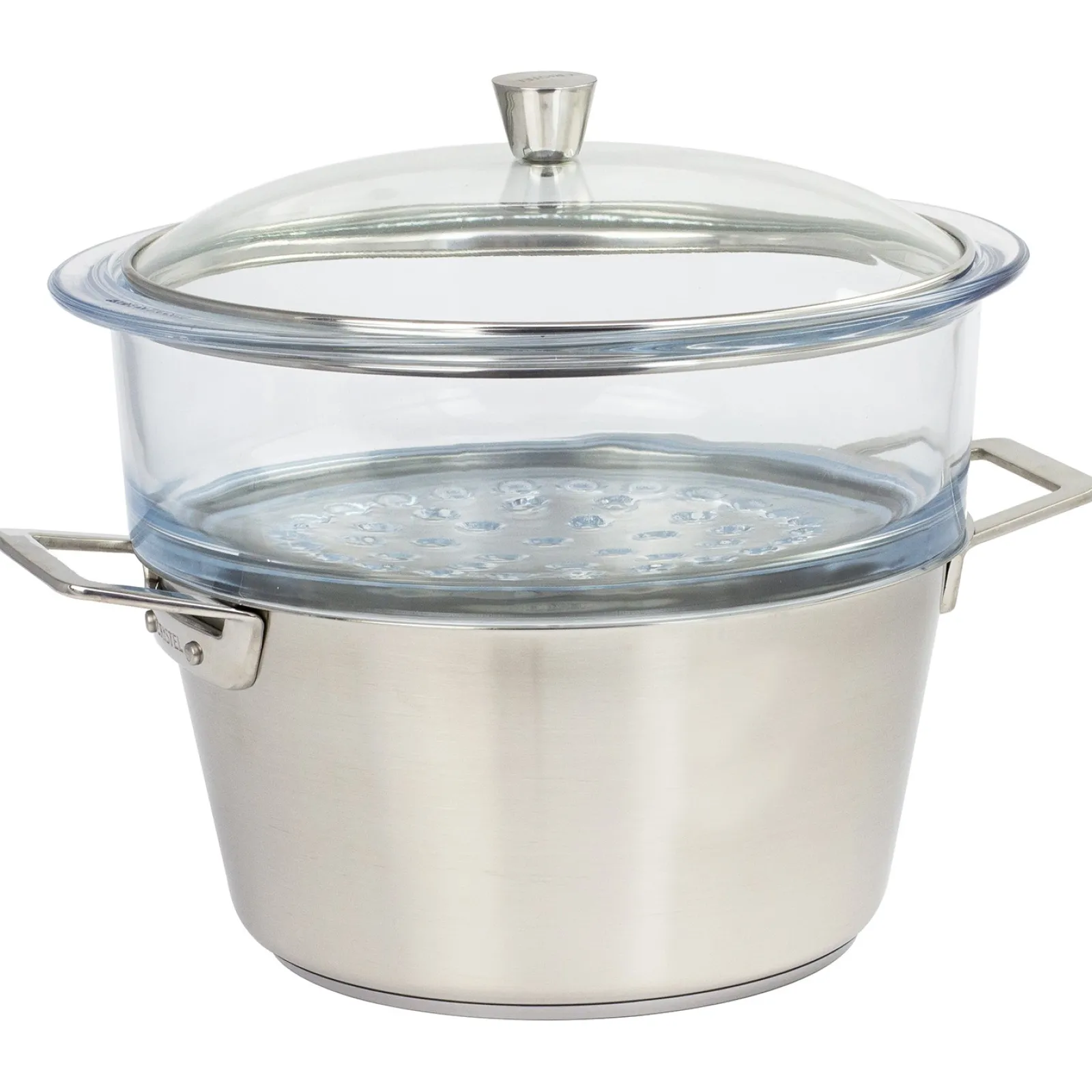 C’est un ustensile de cuisson design grâce à son corps en inox brossé et ses deux anses rivetées à la finition polie.