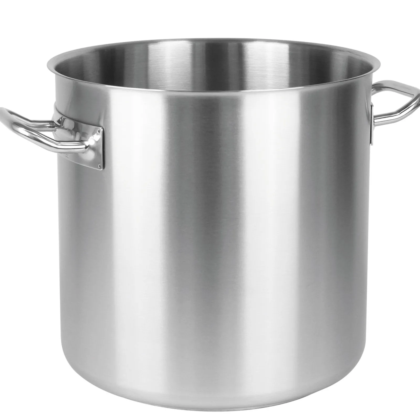 Marmite inox 18/10, finition brossée, anses fil inox rivetées, sans couvercle.