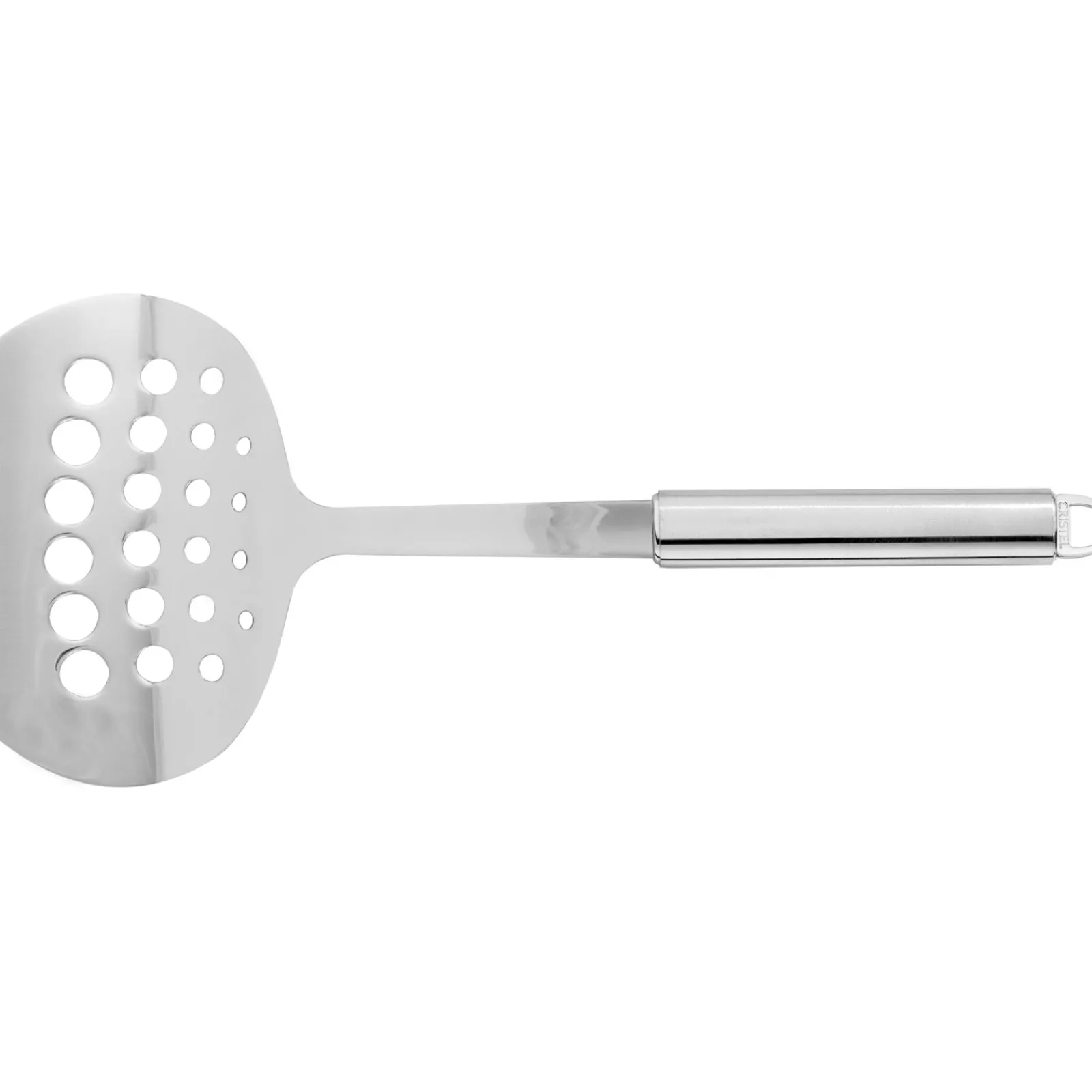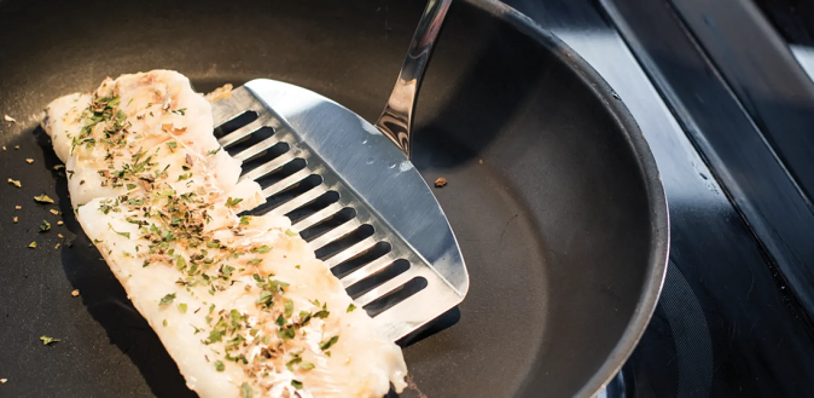 Large et plate, cette spatule permet de saisir et retourner sans les abîmer les poissons entiers et les filets à chair plus délicate. Retournez vos aliments sans risque de