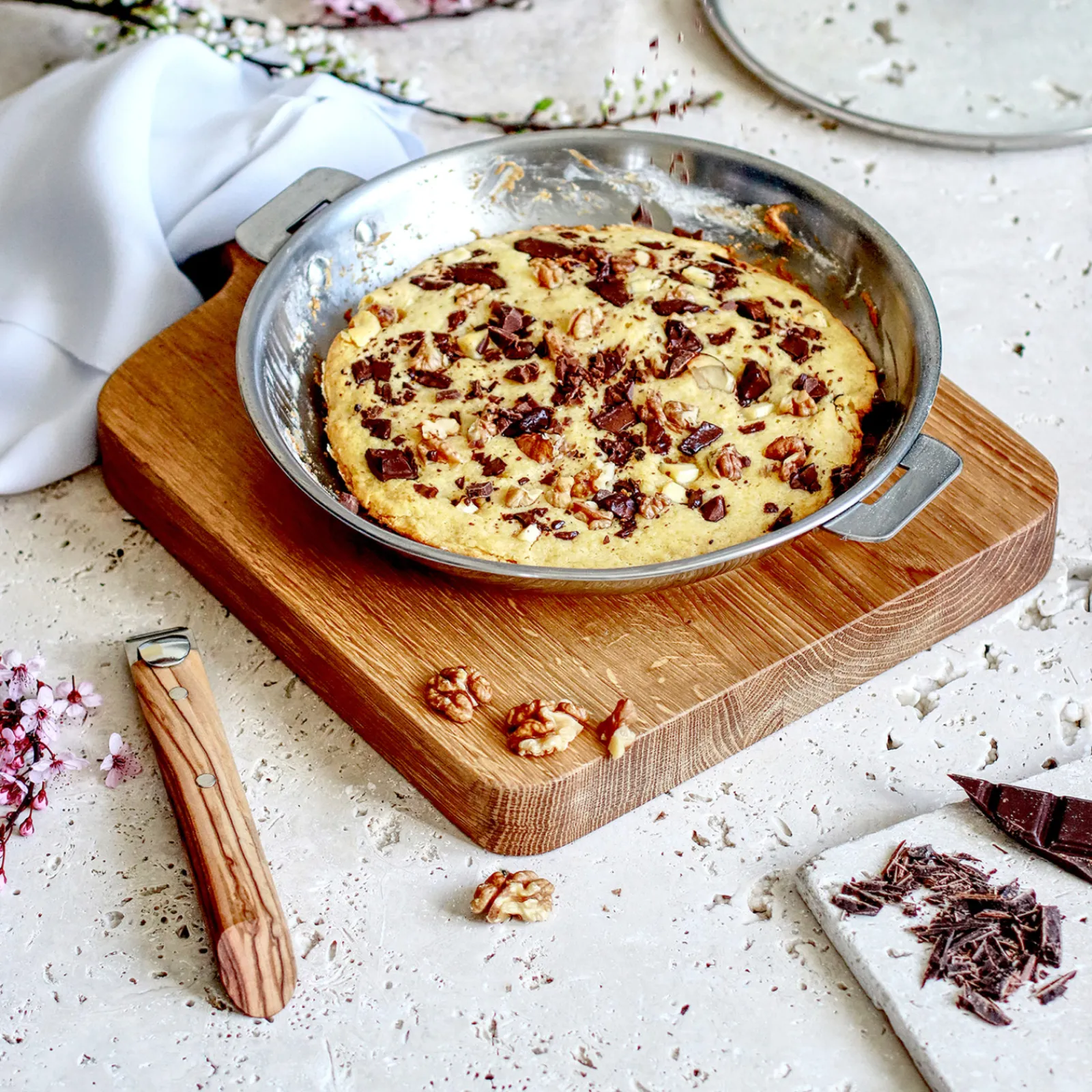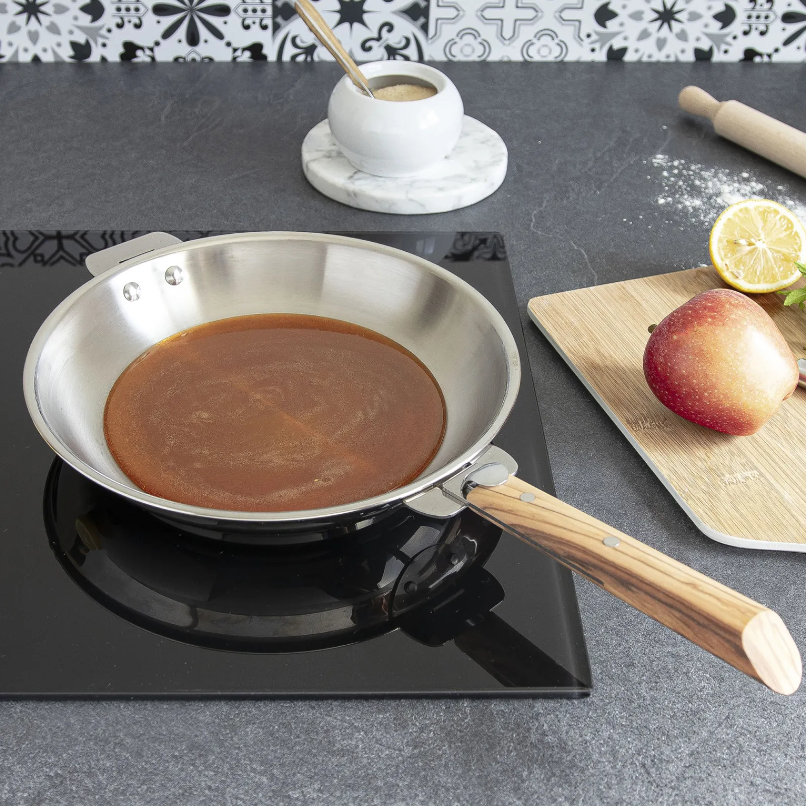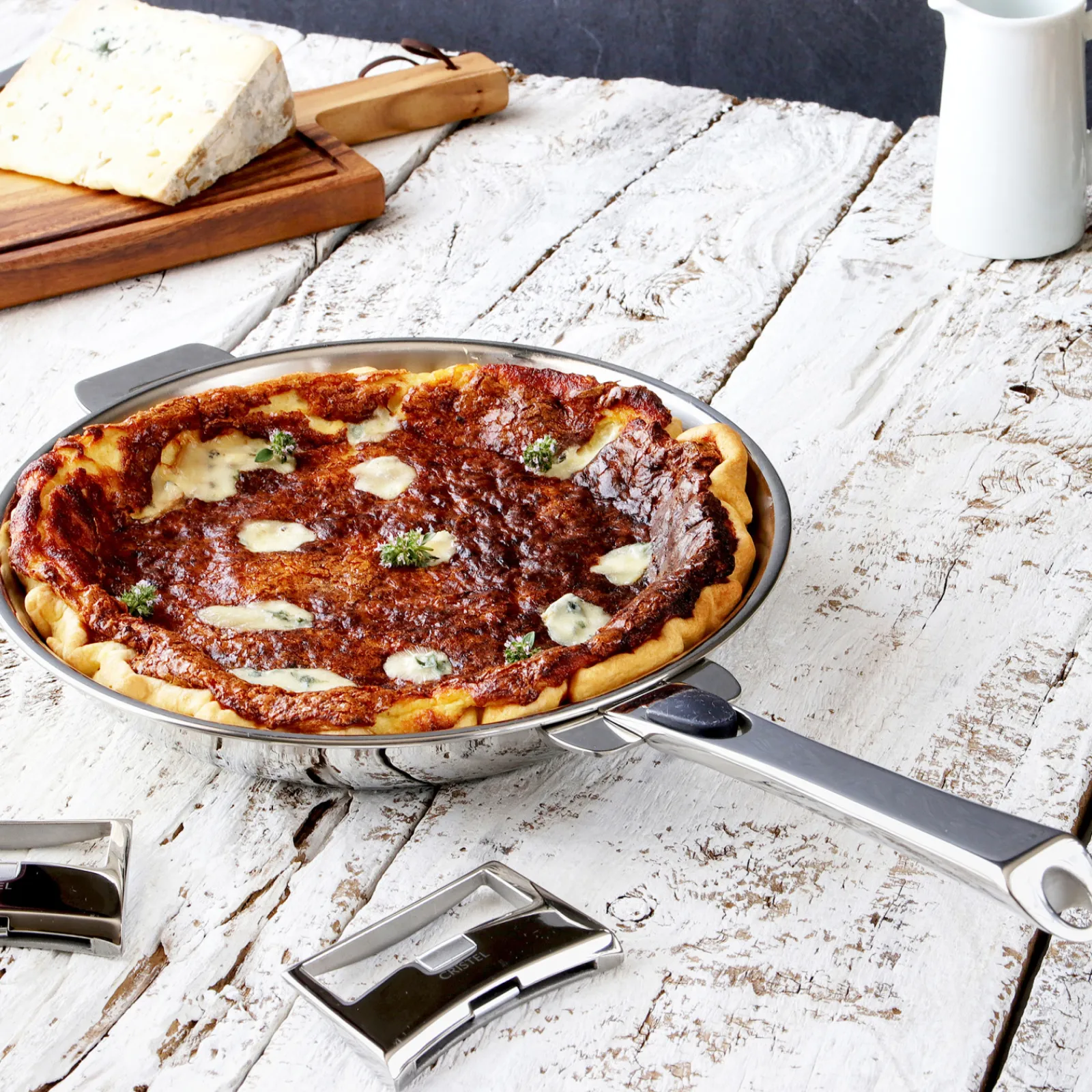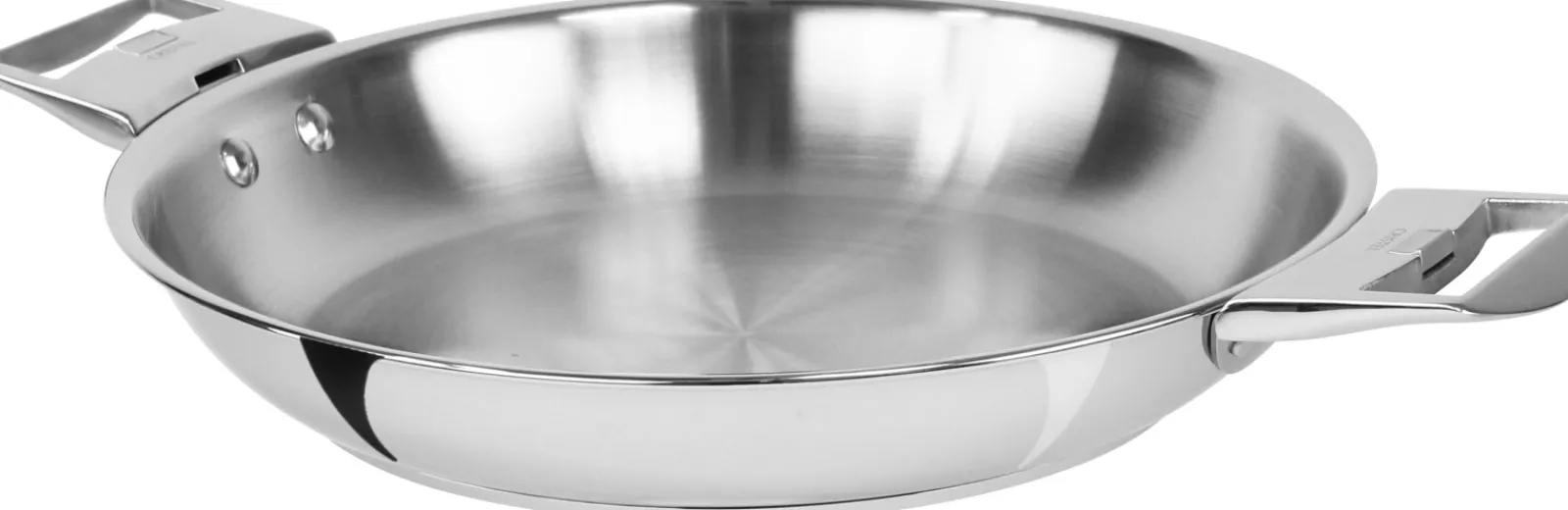 Sans poignée, la poêle inox CRISTEL se transforme en plat à four pour toutes vos recettes salées ou sucrées.