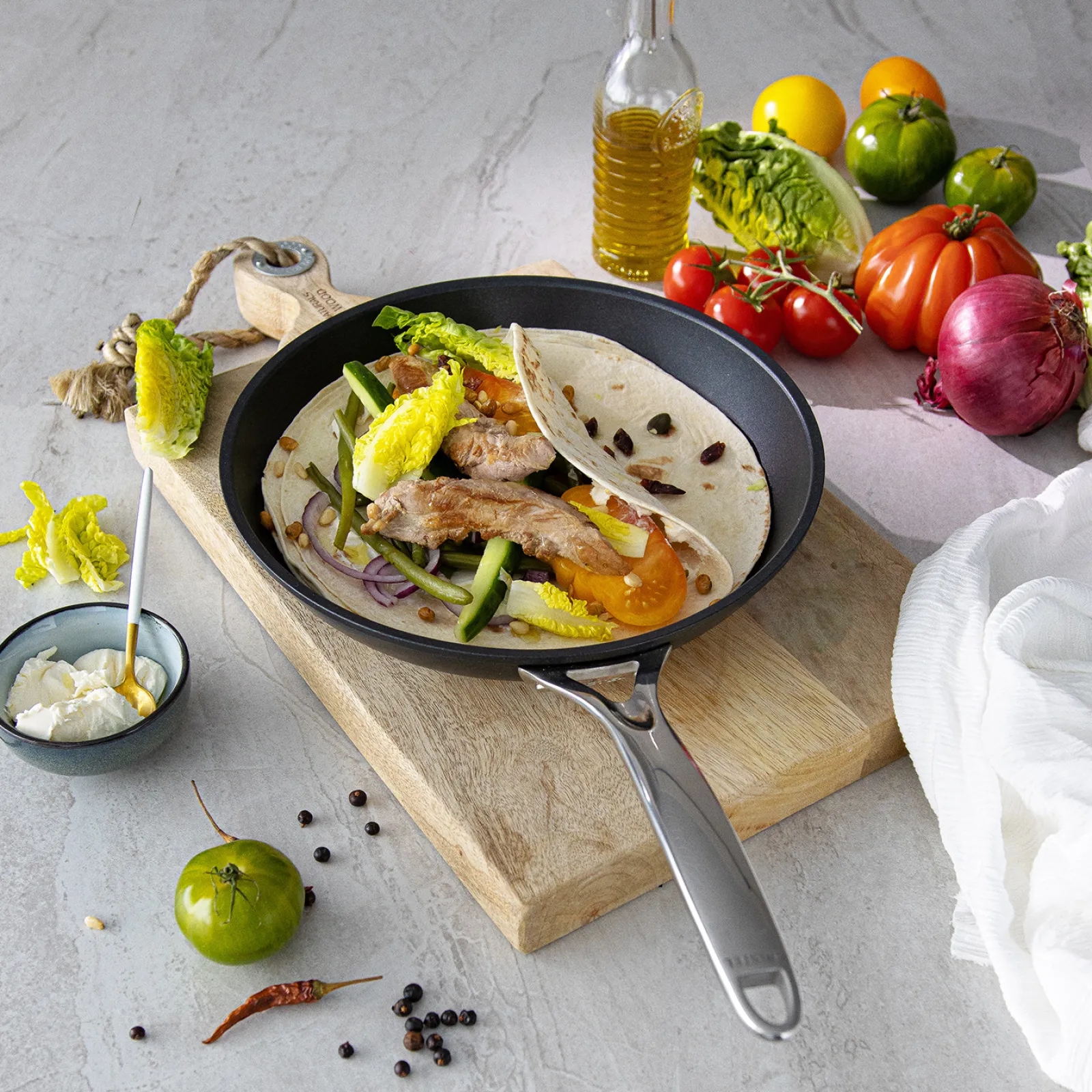 La forme unique tout en rondeur du corps de l’ustensile est idéale pour mélanger, faire sauter et cuire et se nettoie facilement après utilisation.