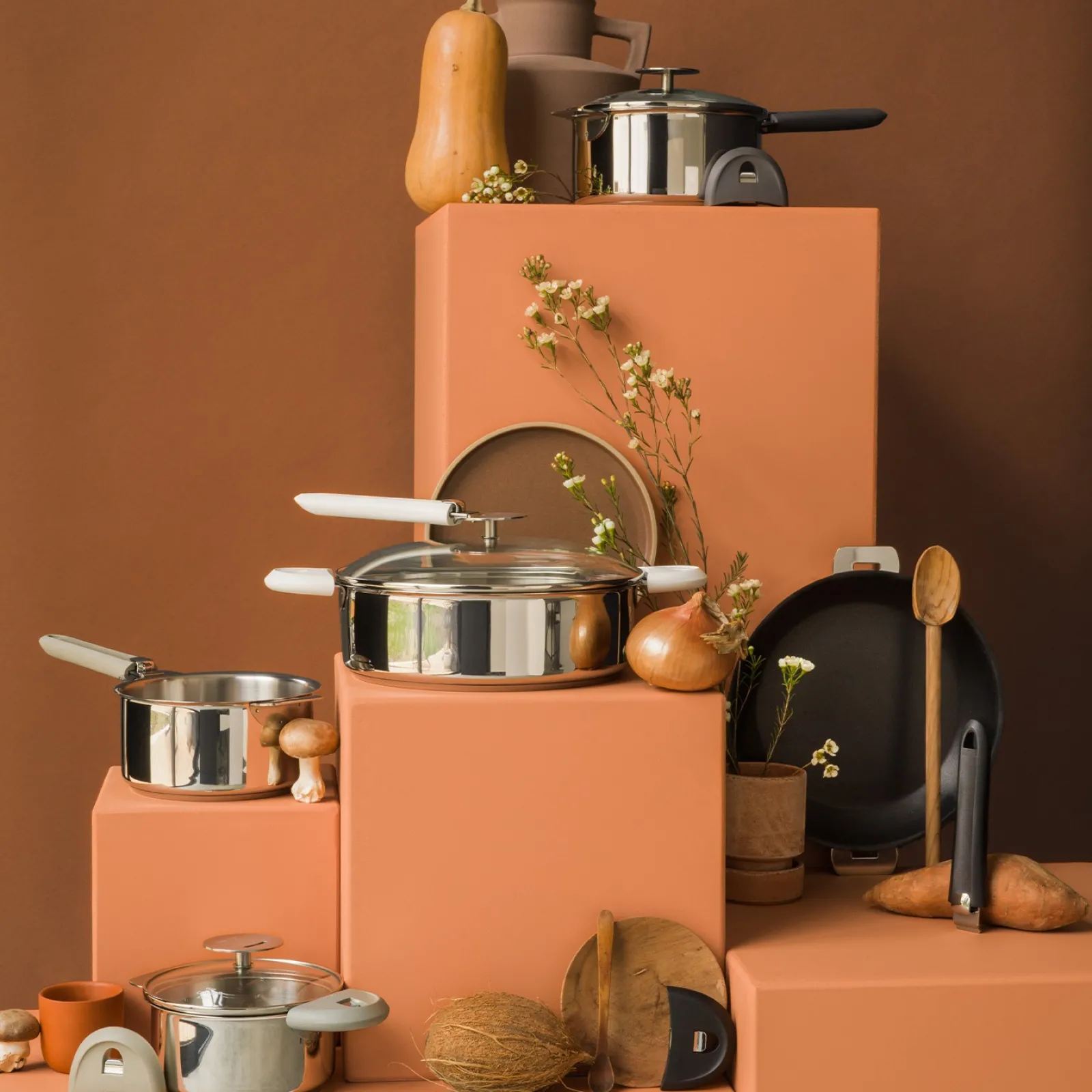 En bakélite (la poignée ne fond pas lorsqu’elle est en contact direct avec la flamme) avec un mécanisme inox, les poignées amovibles Mutine assurent sécurité et modularité dans votre cuisine.