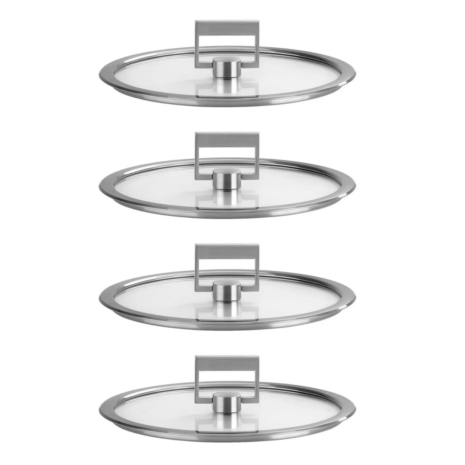 Série de 4 Couvercles ⌀ 14, 16, 18, 20cm Strate Fixe en verre trempé cerclé inox.