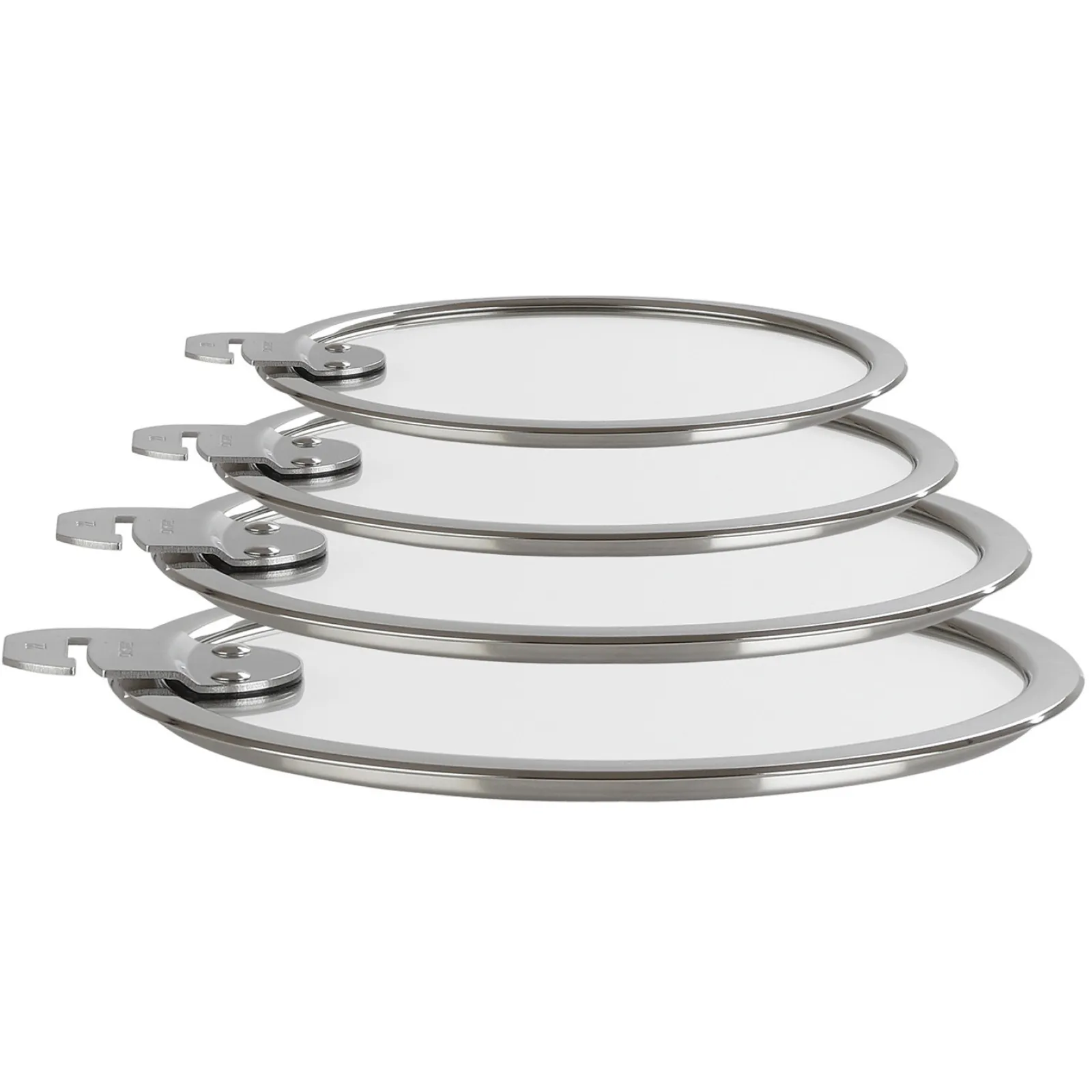 Série de 4 couvercles plats en verre, cerclage inox, Strate Amovible.